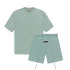 The Fear of God Essentials Summer Set in the color "Sycamore" is a stylish and comfortable combination, perfect for the warmer months. This set consists of a T-shirt and sweatshorts, both in a subtle green shade that can be effortlessly combined with various outfits.