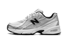 Het bovenwerk is uitgevoerd in schoon wit leer, aangevuld met metallic zilveren details op de branding en overlays voor een subtiele glans. Marineblauwe accenten zorgen voor diepgang en contrast, en geven de sneaker een tijdloze, sportieve look. De kenmerkende gewatteerde enkelkraag en robuuste zoolconstructie blijven trouw aan het originele 740-silhouet, terwijl moderne demping comfort levert voor dagelijks gebruik.