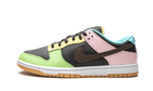 De Nike Dunk Low SE "Free 99 - Black" met SKU DH0952-001 is een speciale editie die deel uitmaakt van het kleurrijke “Free.99” pack, geïnspireerd op lokale markten en de kleurrijke chaos van koopjes. Deze uitvoering combineert een zwart leren basis met felle, asymmetrische kleurblokken op de linker- en rechterschoen, wat zorgt voor een uniek en speels ontwerp.